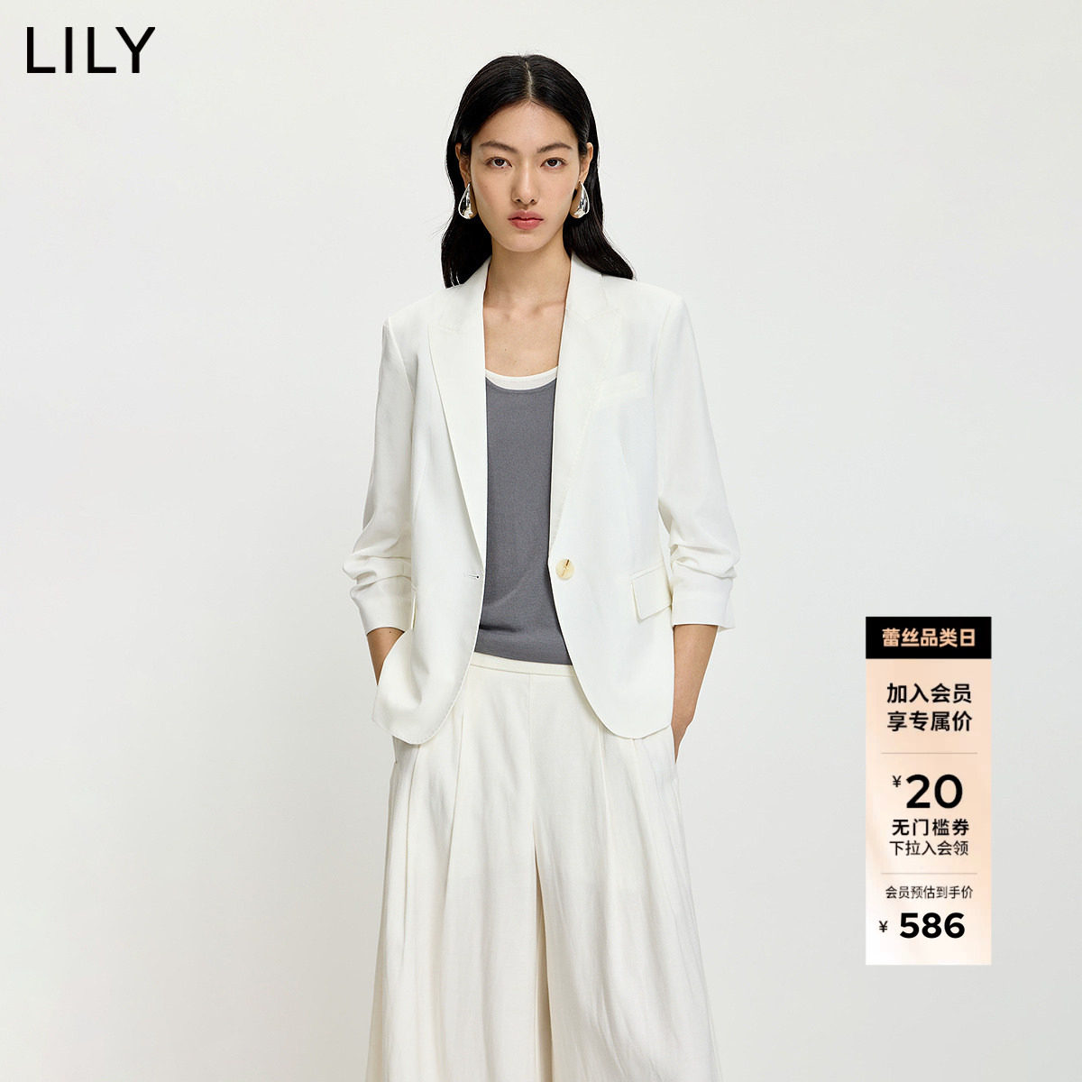 LILY2026夏新款女装莱赛尔亚麻混纺老钱收腰气质通勤白色西装外套