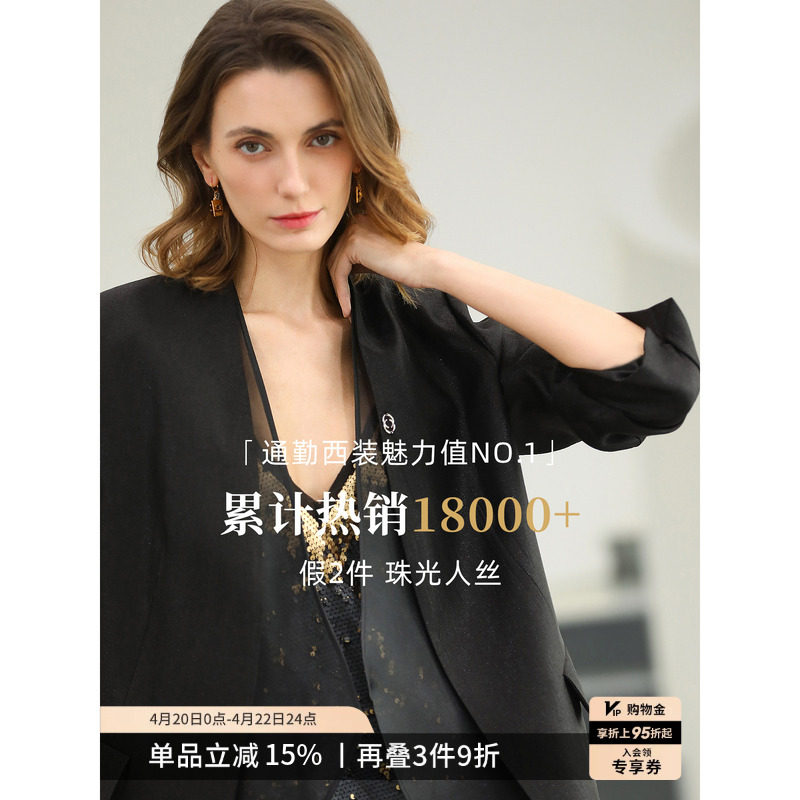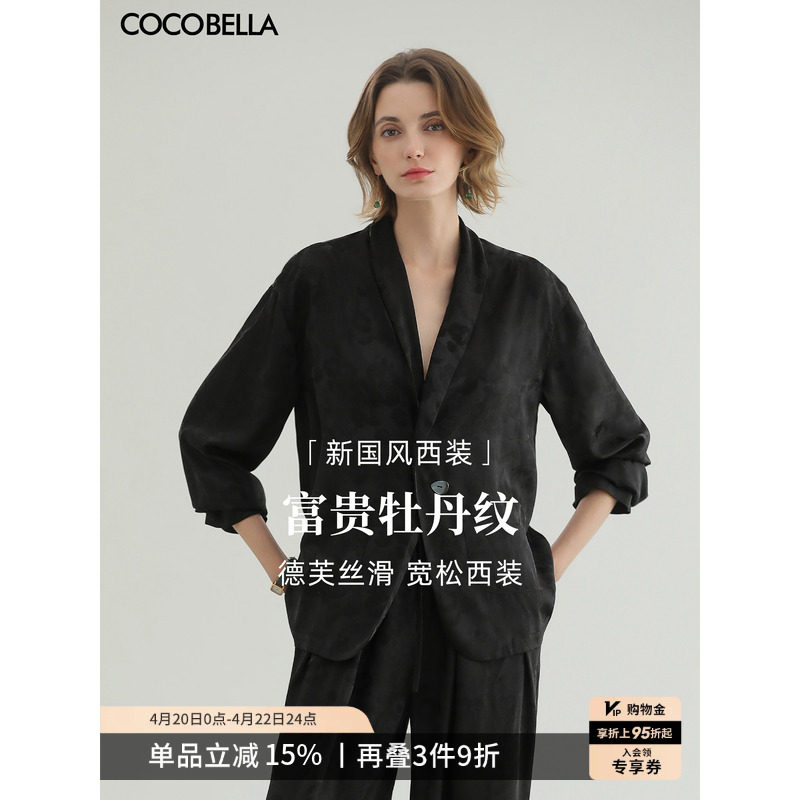 COCOBELLA新中式暗纹提花丝光缎面西装女通勤正装外套SC7002