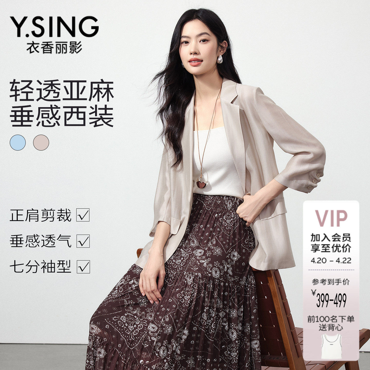 solighter 法式复古亚麻防晒轻薄西装外套女2025新款廓形宽松上衣