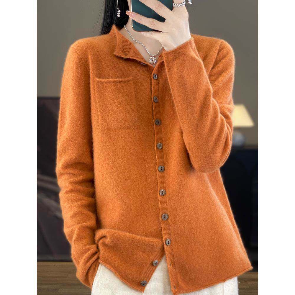加码春秋季大码外穿100纯羊毛针织开衫女子宽松早春优雅别致的毛