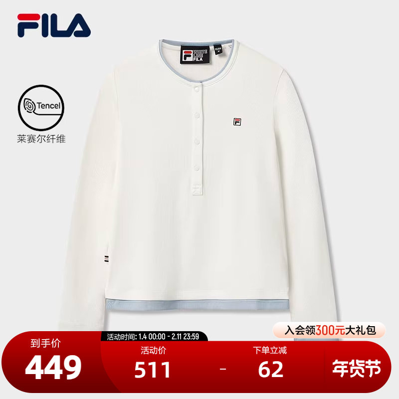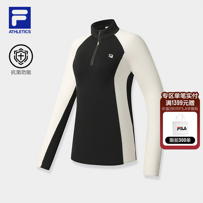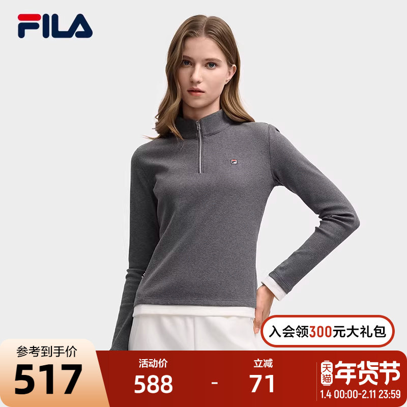 FILA 斐乐官方女子针织长袖衫2026春季新款网球运动半拉链加绒长T