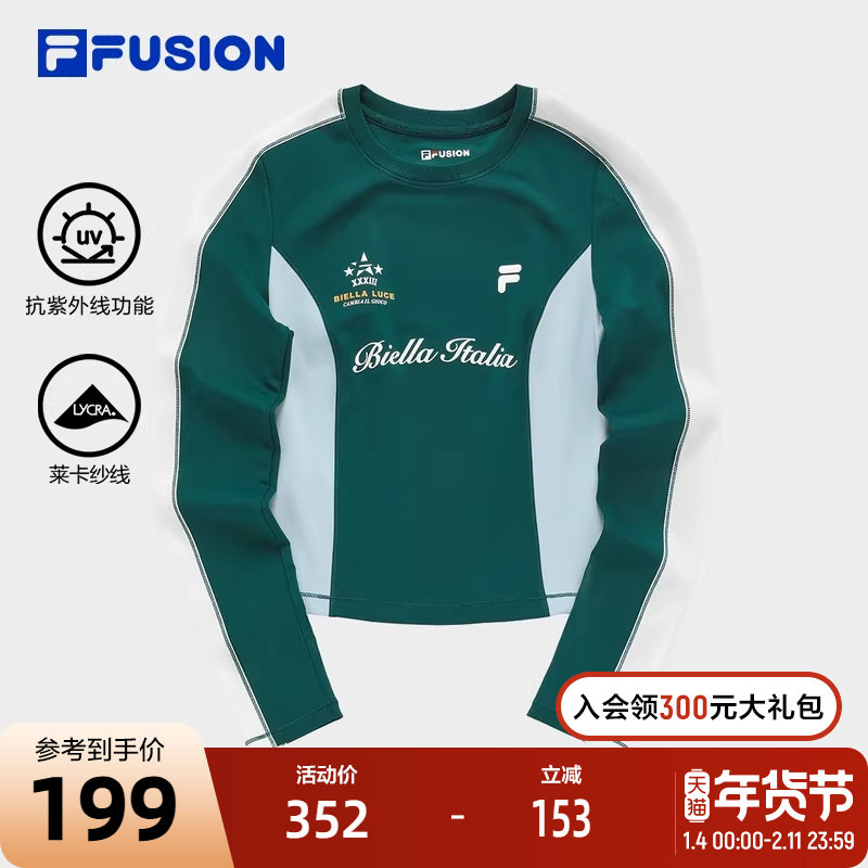 FILA FUSION斐乐潮牌女子针织长袖衫2024春新款防晒上衣修身长T女