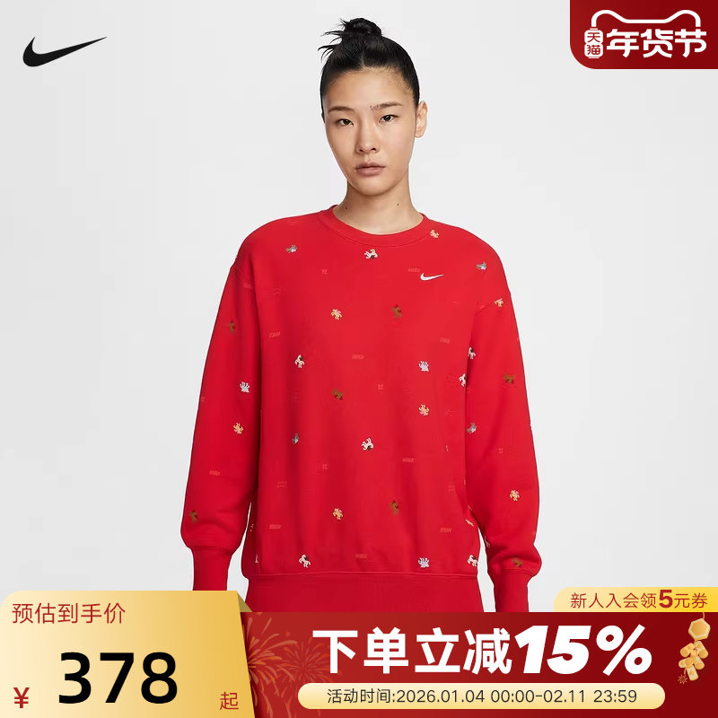 NIKE耐克女子红色卫衣马年限定CNY针织圆领印花套头衫IQ3825-657