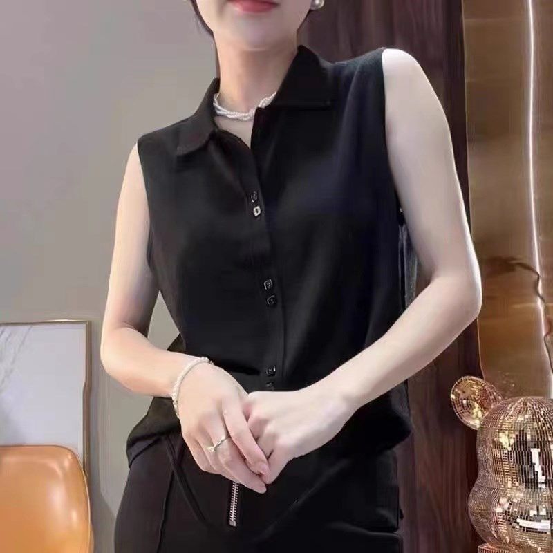 超细羊毛女子Polo领无袖底衬衫背心衬衫秋冬内穿利基多功能针织背