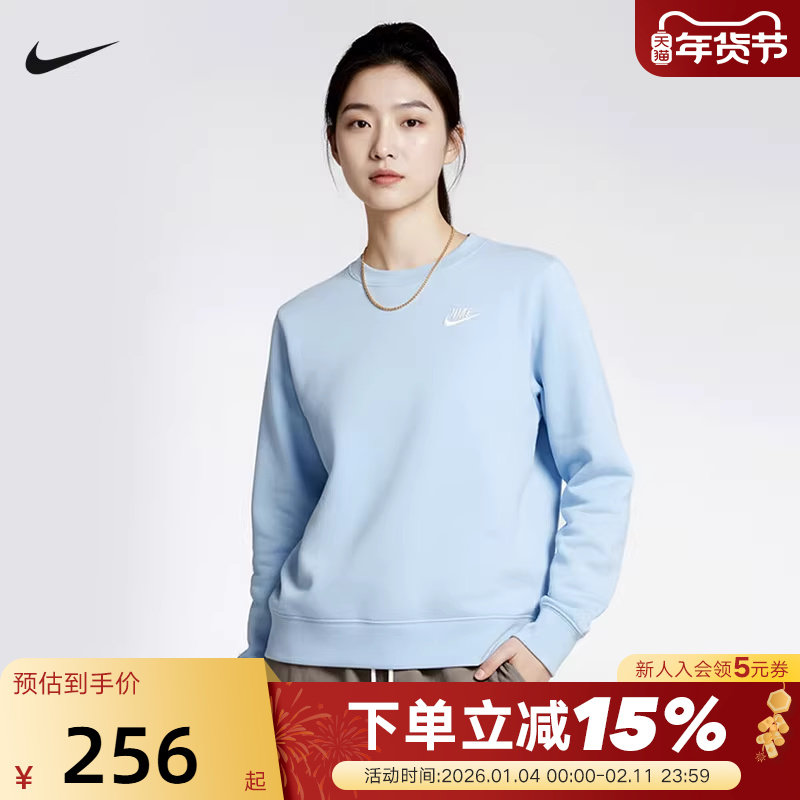 NIKE耐克女子薄绒圆领卫衣冬季针织叠搭刺绣运动套头衫DQ5474-441