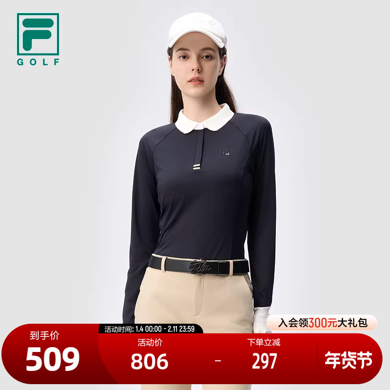 FILA 斐乐官方女子针织长袖POLO衫2024冬新款高尔夫运动防晒上衣