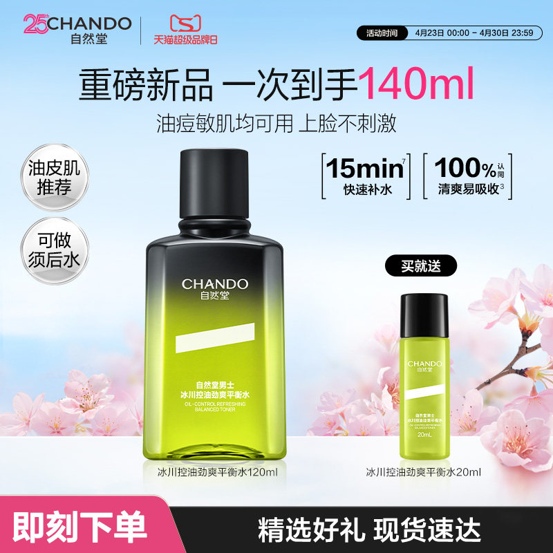 自然堂男士冰川控油劲爽平衡水祛痘保湿紧致舒缓哑光敏肌可用学生