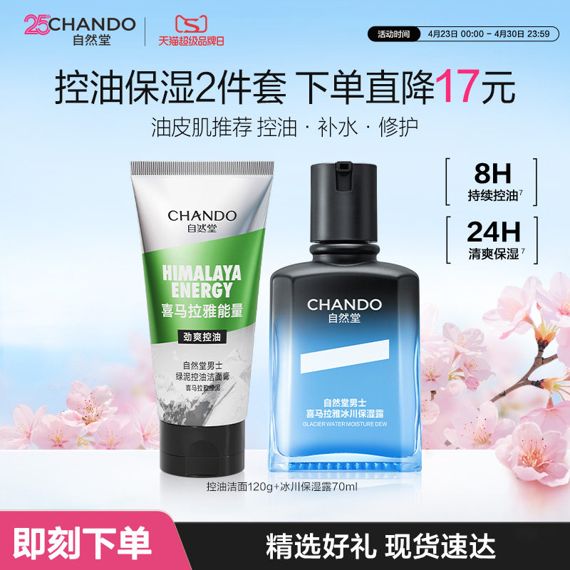 自然堂男士冰川保湿露水乳护肤套装控油祛痘美白去黑头洗面奶乳液
