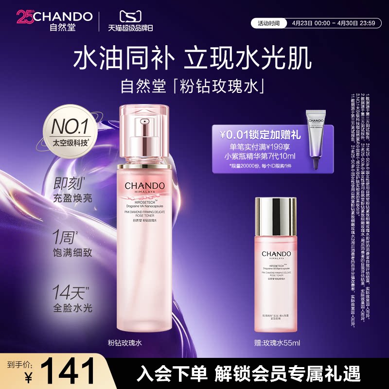 自然堂粉钻玫瑰水110ml紧致抗老太空爽肤水女补水保湿水裸瓶