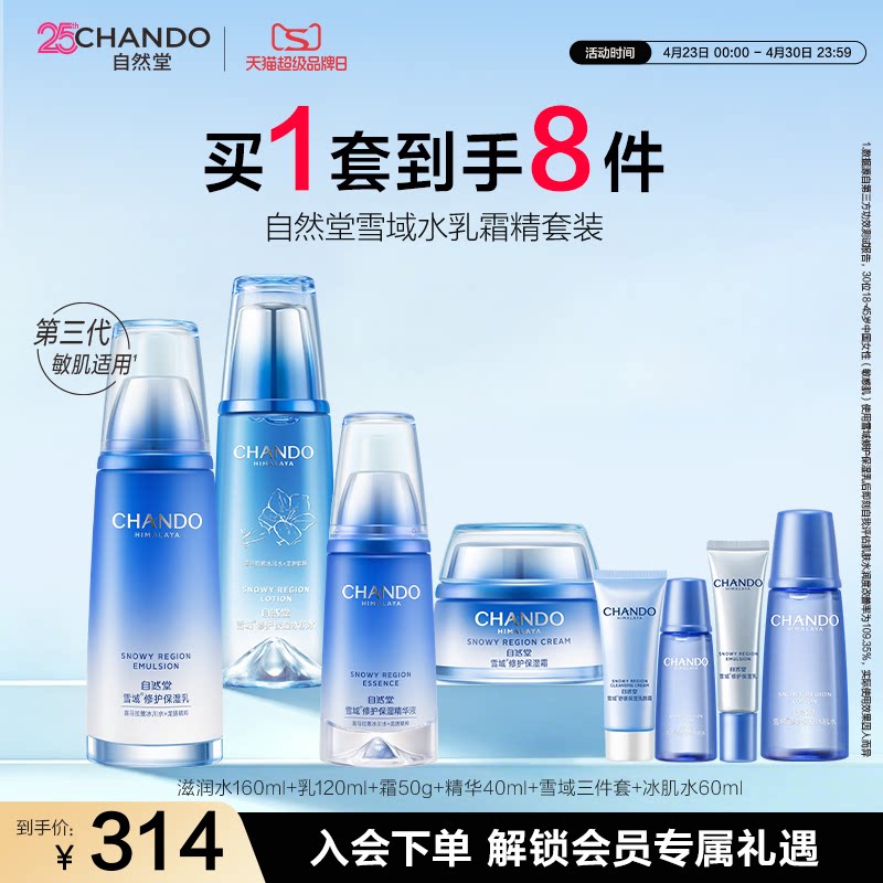 自然堂雪域水乳套装补水保湿舒缓修护化妆品护肤品官方旗舰店正品