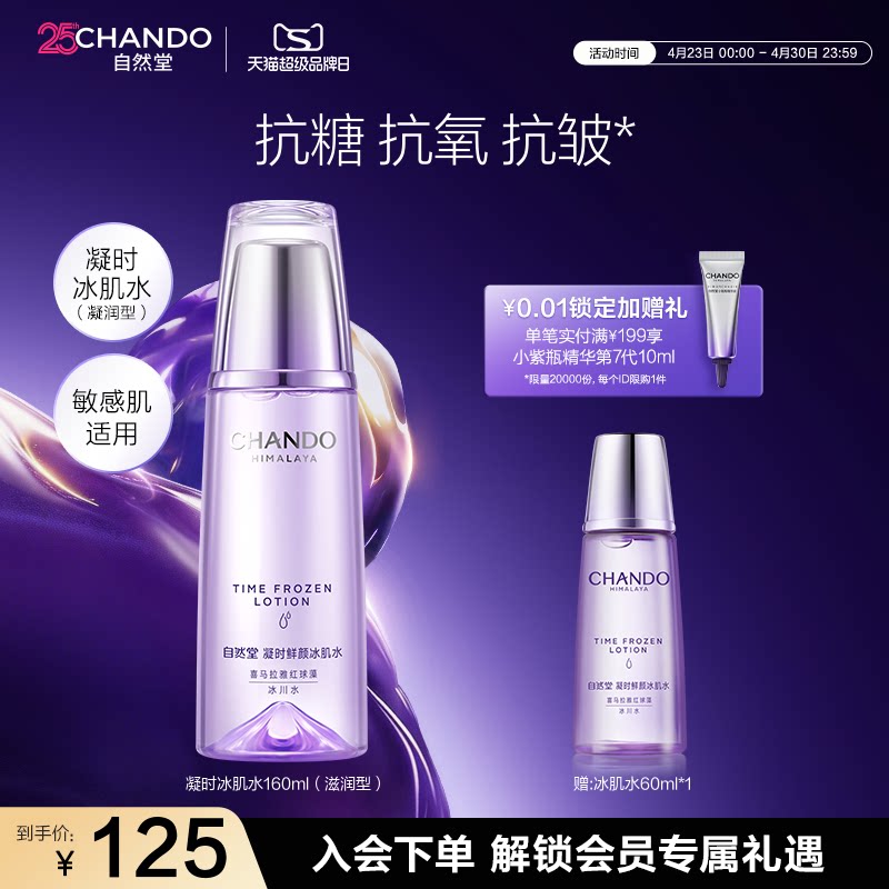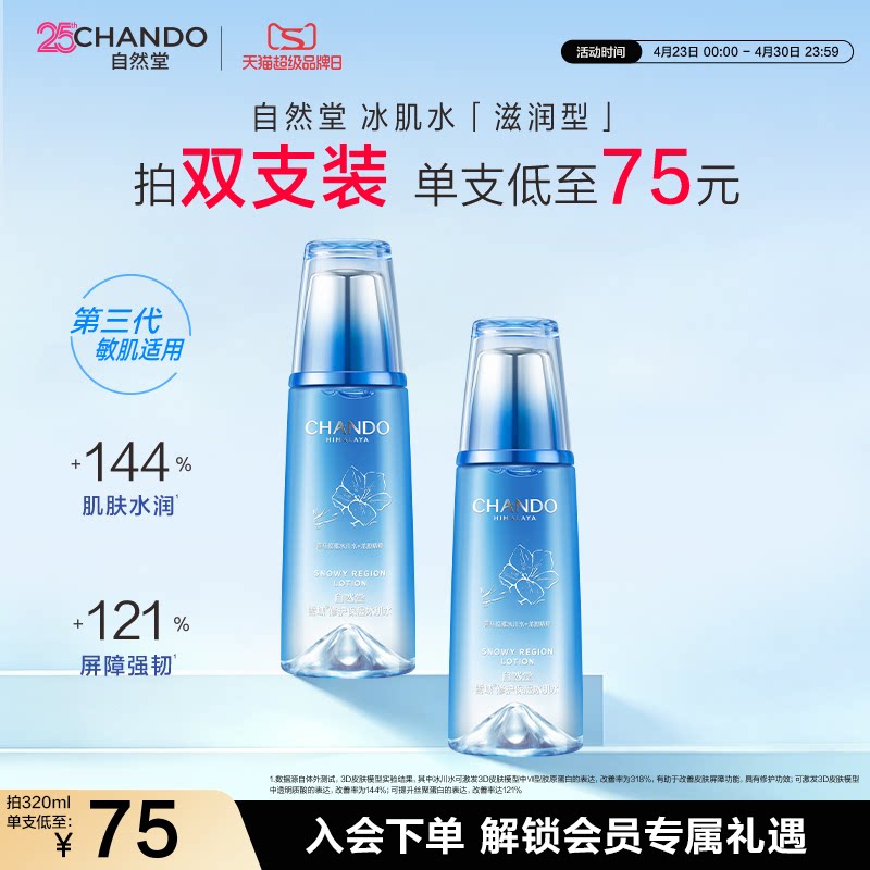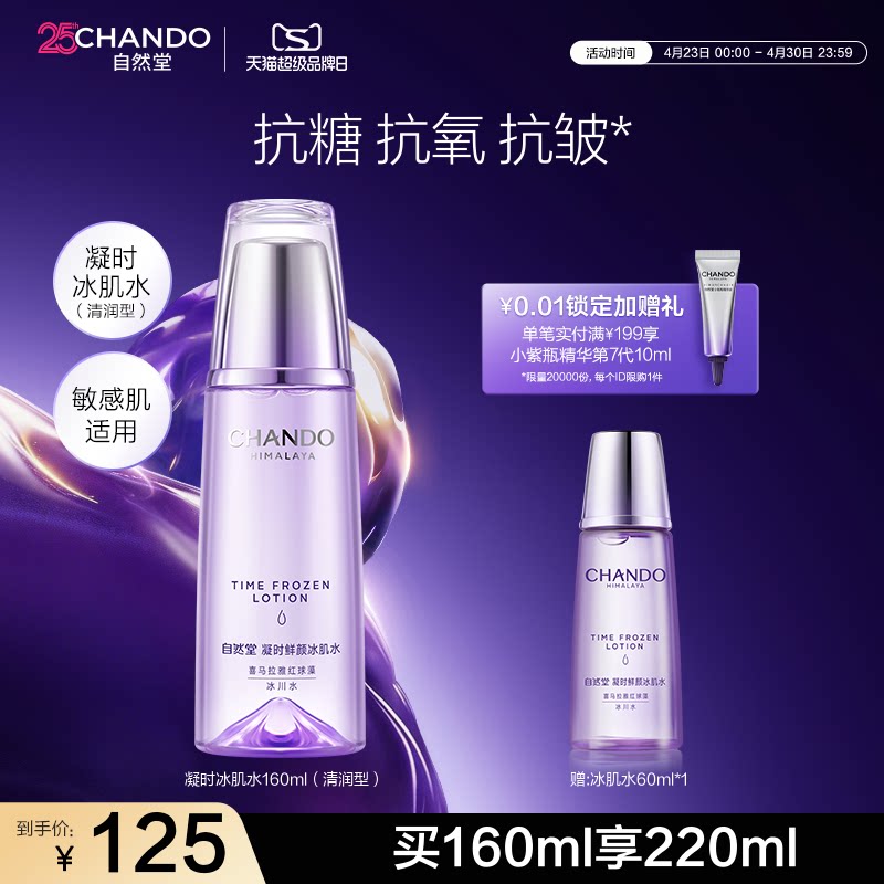 自然堂凝时鲜颜清润型冰肌水保湿补水抗皱紧致化妆水爽肤敏肌可用