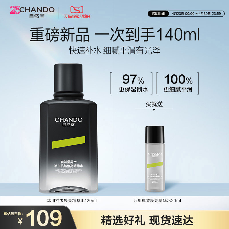 自然堂男士冰川抗皱焕亮精华水保湿抗皱紧致舒缓秋冬护肤敏肌可用