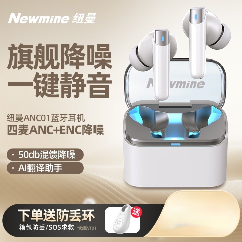 纽曼入耳式无线蓝牙耳机AI智能语音多国语言翻译运动降噪通话耳麦