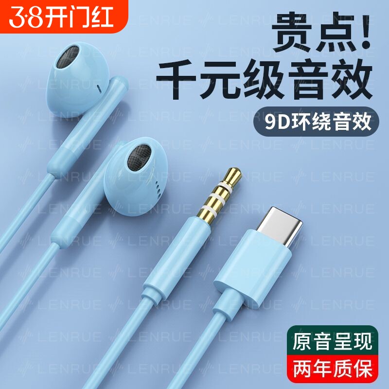 type-c入耳式3.5mm男女通话语音听歌带麦线控圆孔耳塞有线耳机