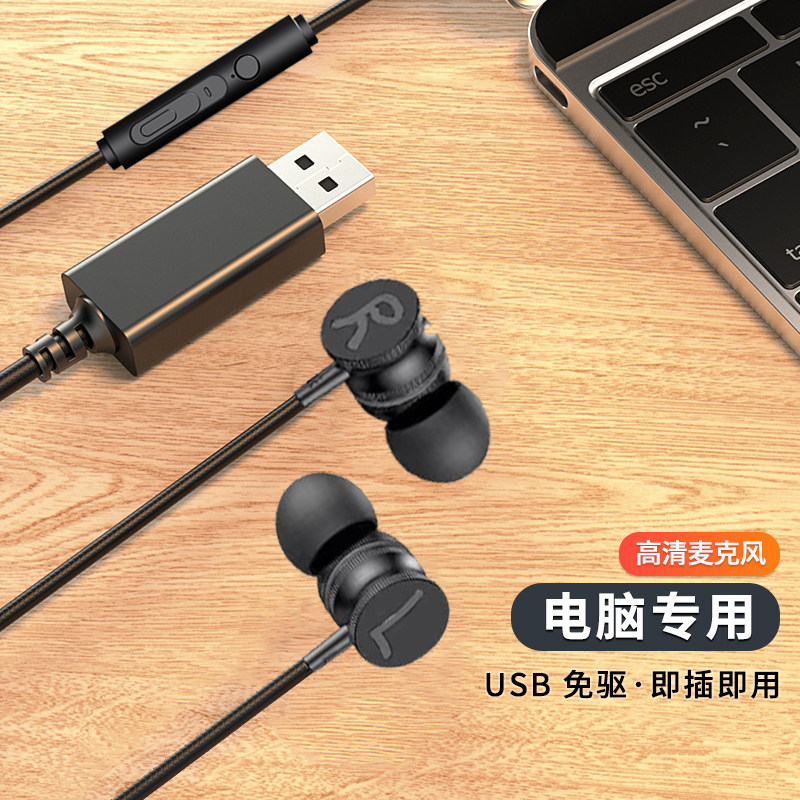 电脑耳机入耳式USB口专用联想有线带麦cf麦克风2合一语音吃鸡游戏