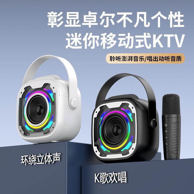 跨境新款V11一体K歌户外便携桌面小低音炮音响无线蓝牙话筒音箱