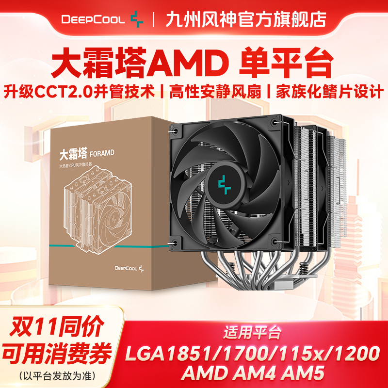 九州风神大霜塔AMD单平台台式主机散热风冷6热管双风扇附带硅脂