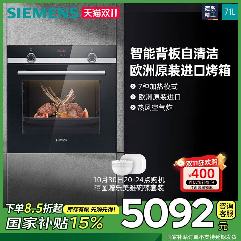 西门子欧洲原装进口智能嵌入式电烤箱专业自清洁珐琅大容量HB233