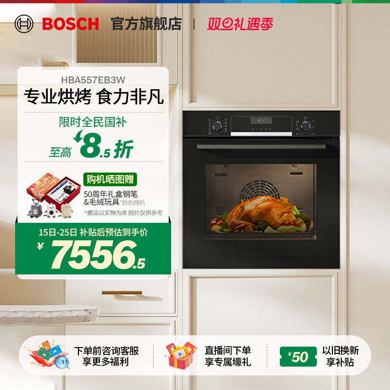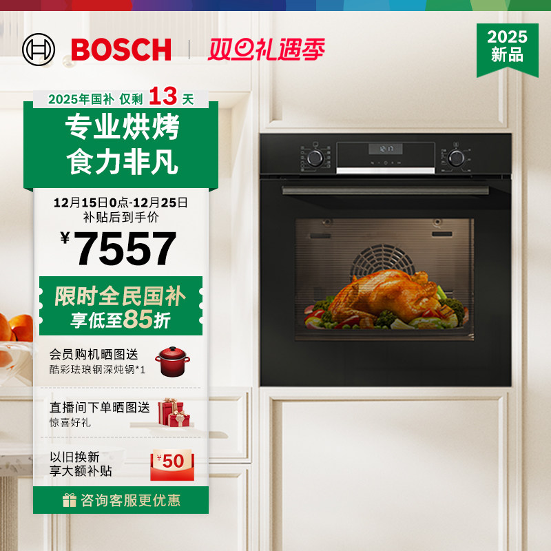 【政府补贴】博世官方进口6系嵌入式电烤箱厨房家用71L大容量557