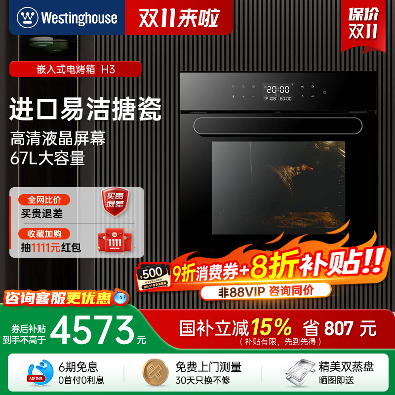 美国西屋 H3 嵌入式电烤箱智能家用烤箱烘焙大容量内嵌搪瓷易清洁