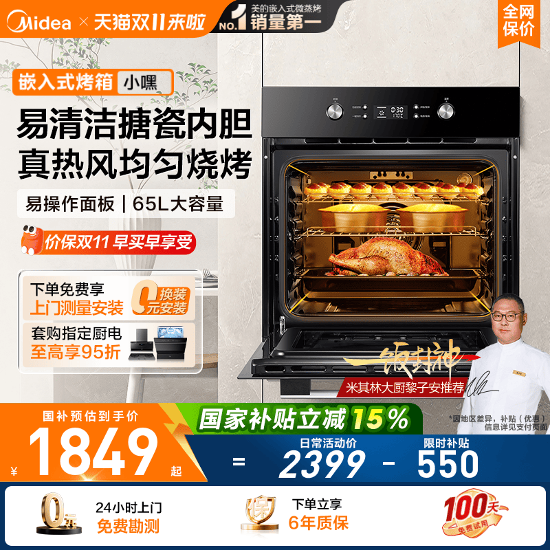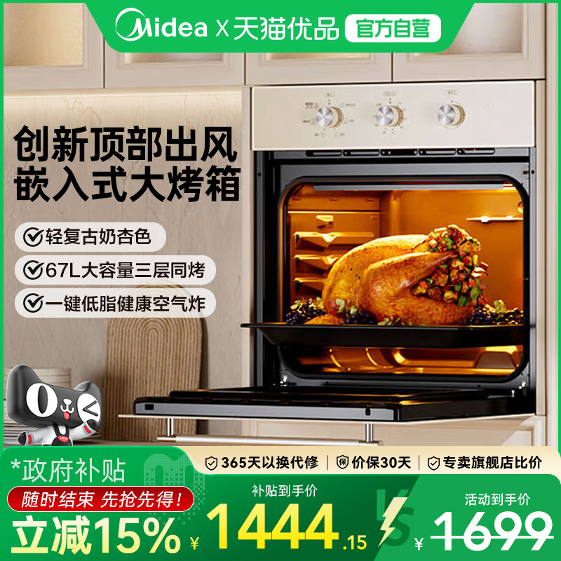 政府补贴美的嵌入式电烤箱家用65升大容量全自动搪瓷烘焙烤箱小嘿