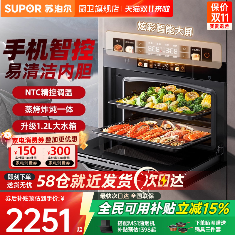 苏泊尔709S嵌入式蒸烤炖炸一体机蒸烤箱家用台式大容量电烤箱蒸箱