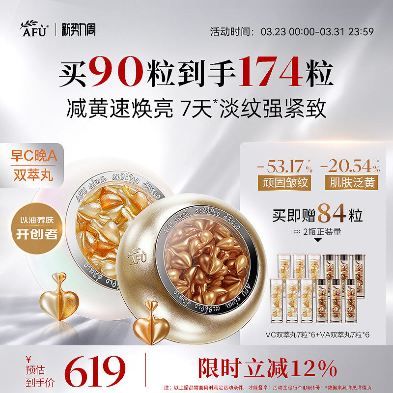 阿芙早C晚A双萃丸组合木乃伊A醇丸VC丸抗皱紧致面部精华次抛干皮