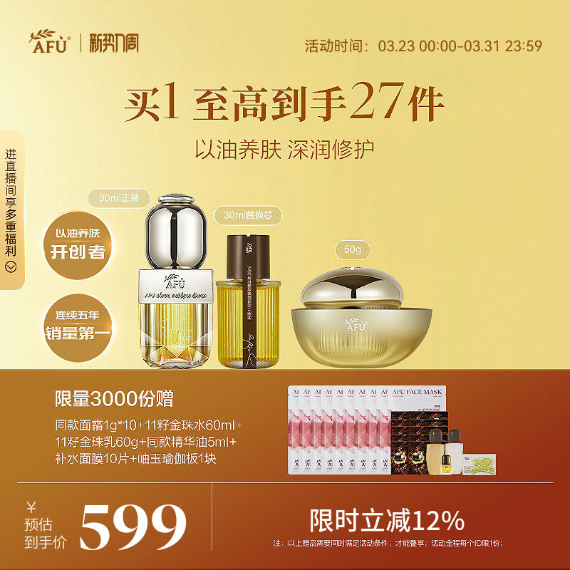 【精油礼盒】阿芙11籽精油六福珠宝联名套装抗皱紧致精华油水面霜