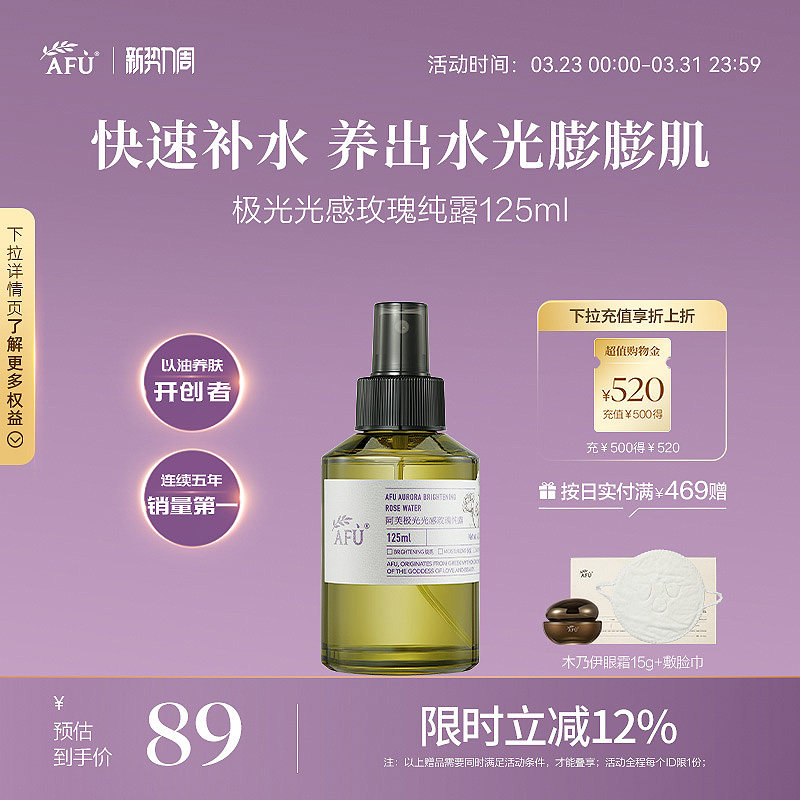 阿芙极光光感玫瑰纯露补水喷雾爽肤水保湿水化妆水护肤品官方正品