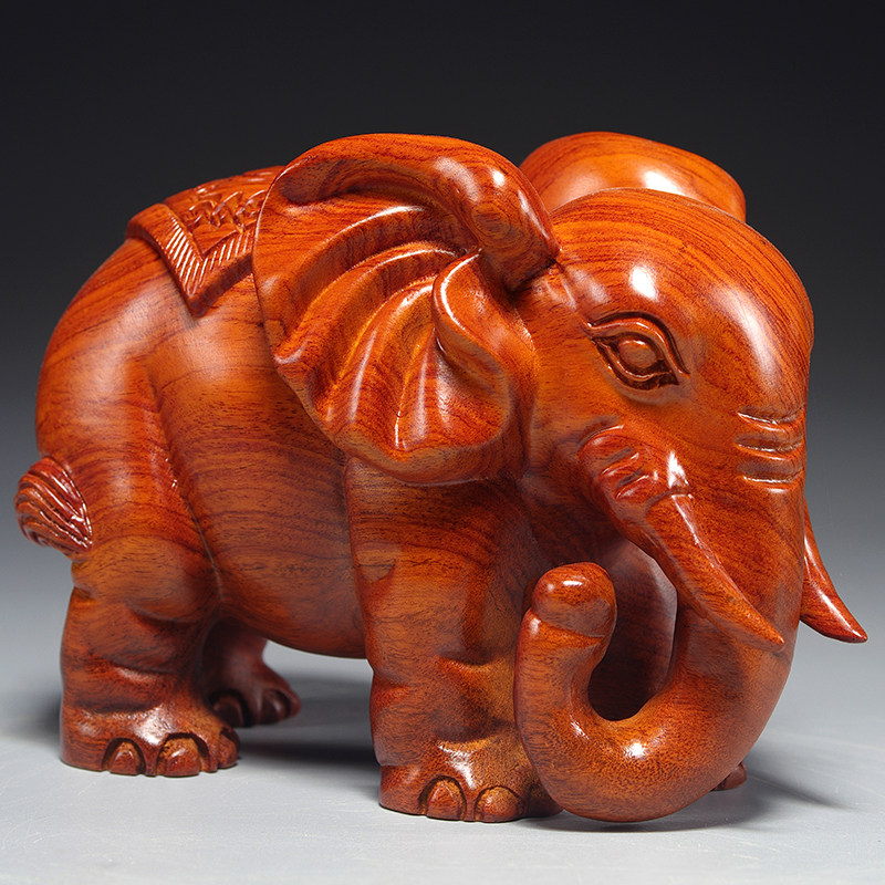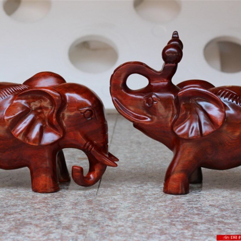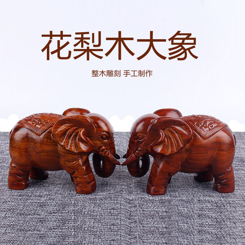 花梨木雕刻大象摆件一对实木家居吉祥木质吸水象办公室装饰工艺品