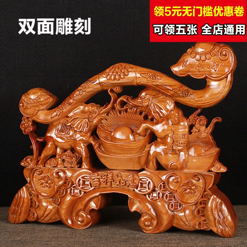 正宗桃木吉祥如意木雕摆件现代客厅如意家居大象招财摆件工艺礼品