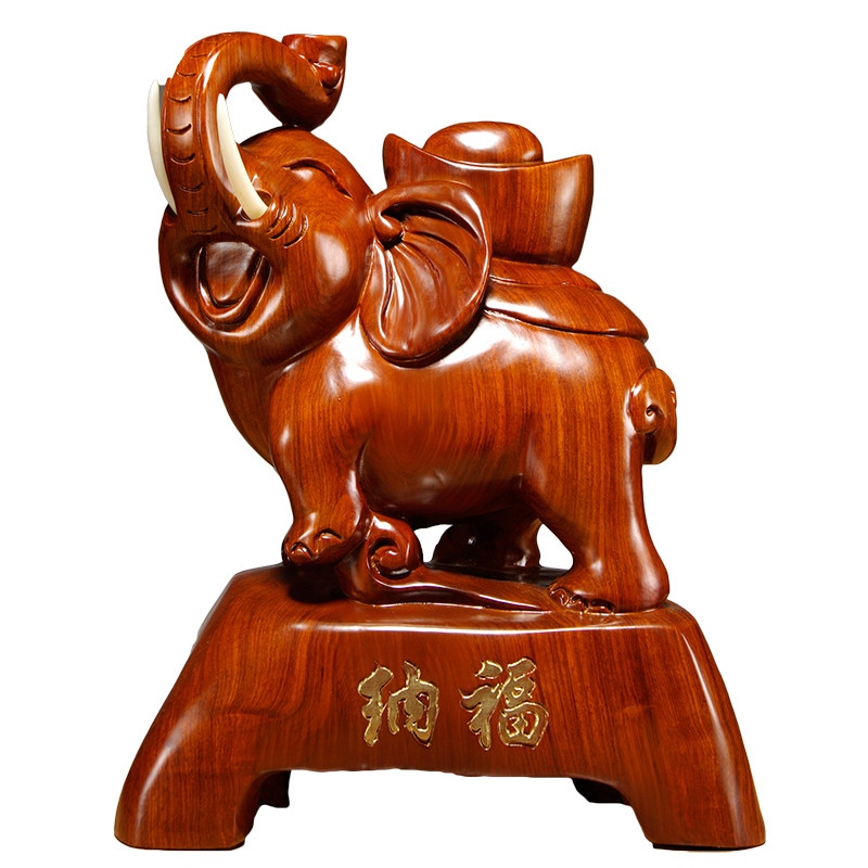 花梨木雕大象摆件实木q家居客厅电视柜装饰品招财木质雕刻工艺品