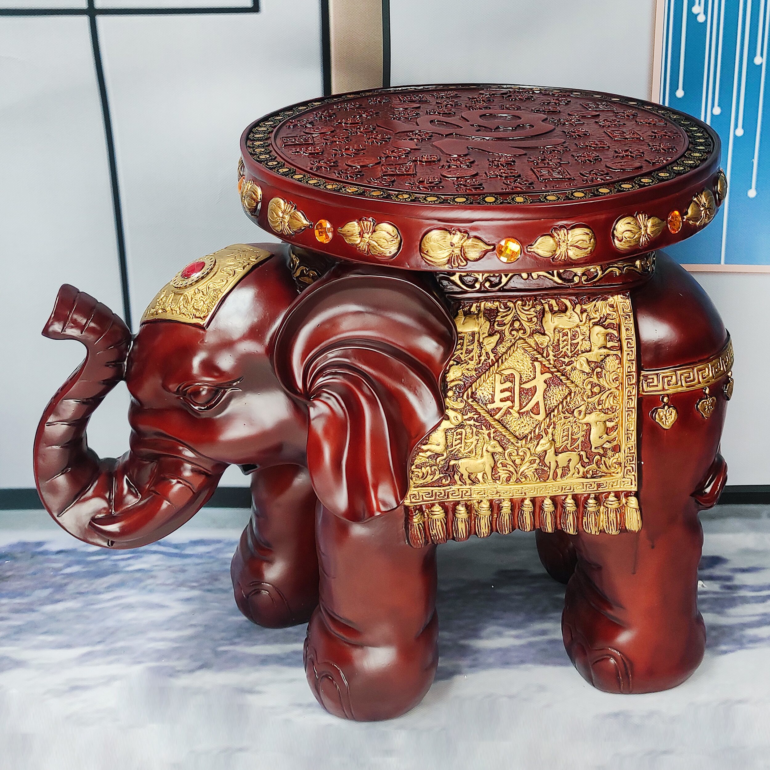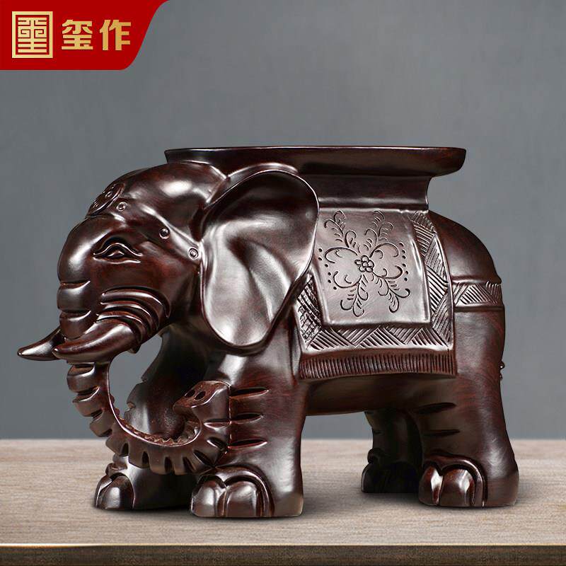 欧式大象换鞋凳红木色门口凳子中式客厅花盆置物架家居装饰品摆件