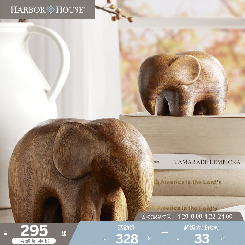 Harbor House美式家居实木装饰品简约客厅木制大象摆件Elephant