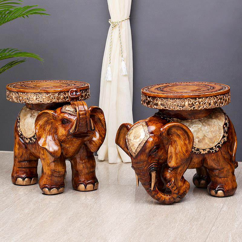 北欧大象换鞋凳子整装雕花大象红木檀木色树脂饰品家居客厅象摆件