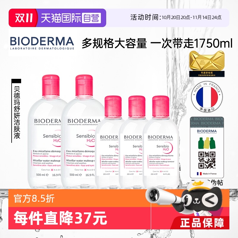 【百补】Bioderma贝德玛卸妆水粉水深层清洁500ml温和卸妆液