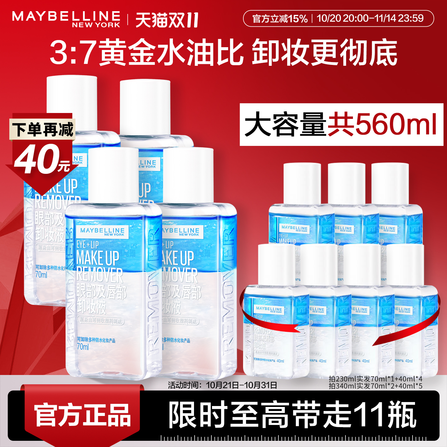 【双11大促】美宝莲纽约眼唇卸妆液深层清洁卸妆油温和卸妆水Z