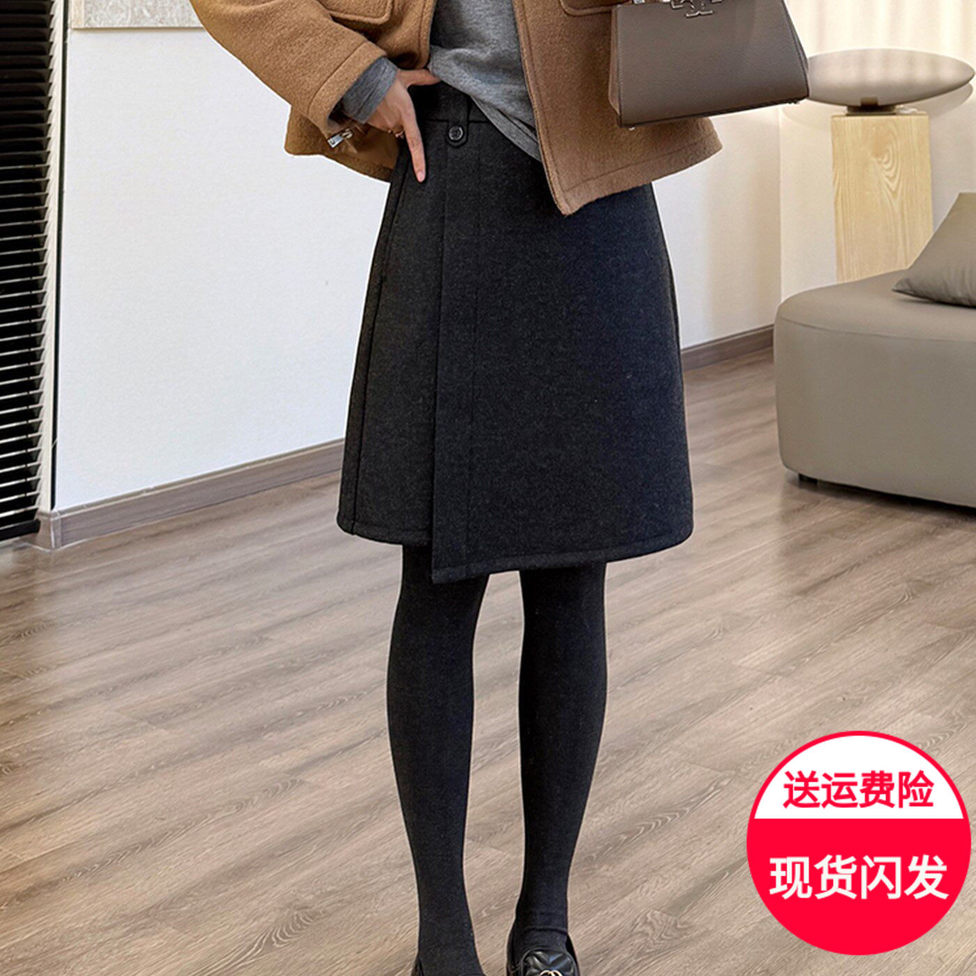 韩风高级感毛呢中裙女梨形身材遮肚半身裙裤大码加厚不规则a字裙