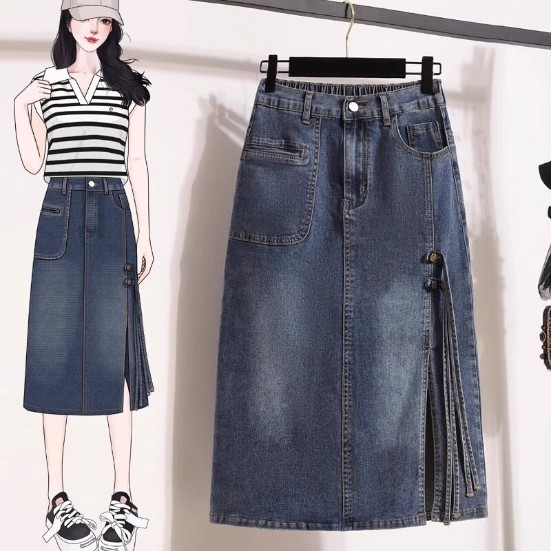 大码女装夏季2025新款宽松弹力牛仔半身裙胖mm显瘦中长款直筒中裙