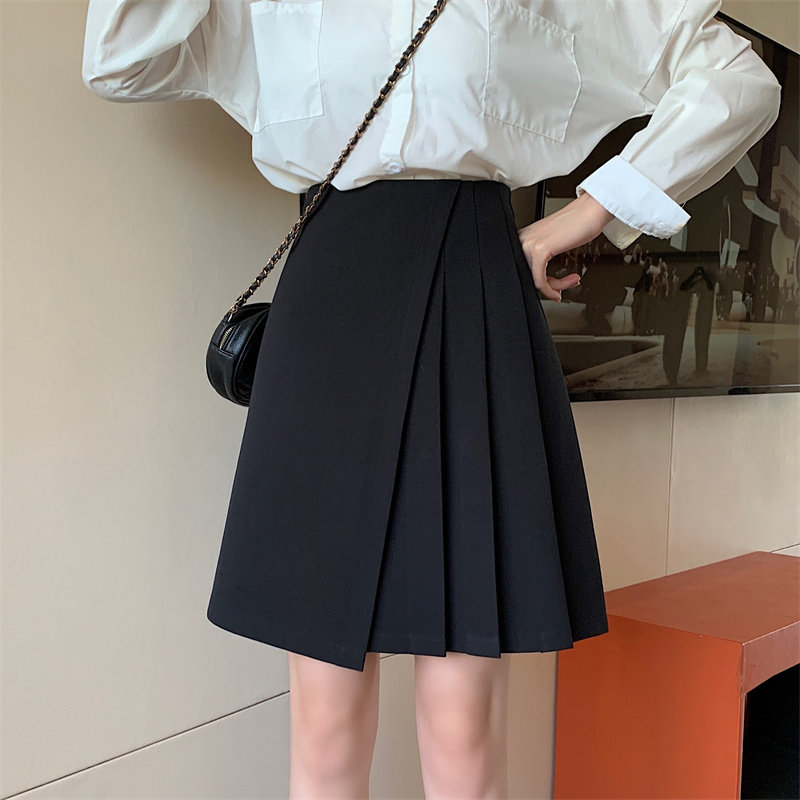 法式中裙春秋遮肚子百褶裙大码不规则A字裙胖mm加长学院风半身裙