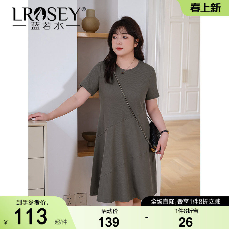 蓝若水大码女装休闲针织连衣裙胖mm夏季新品时尚收腰显瘦a字中裙
