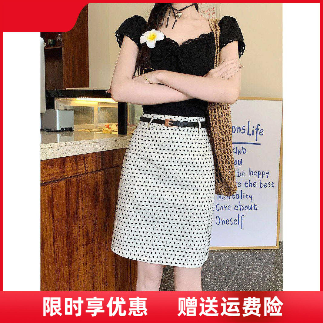 波点半身裙加长款中裙春新款白色高腰短裙显瘦遮胯百搭休闲A字裙