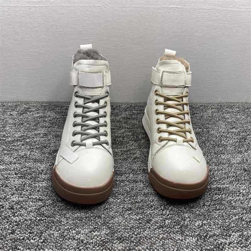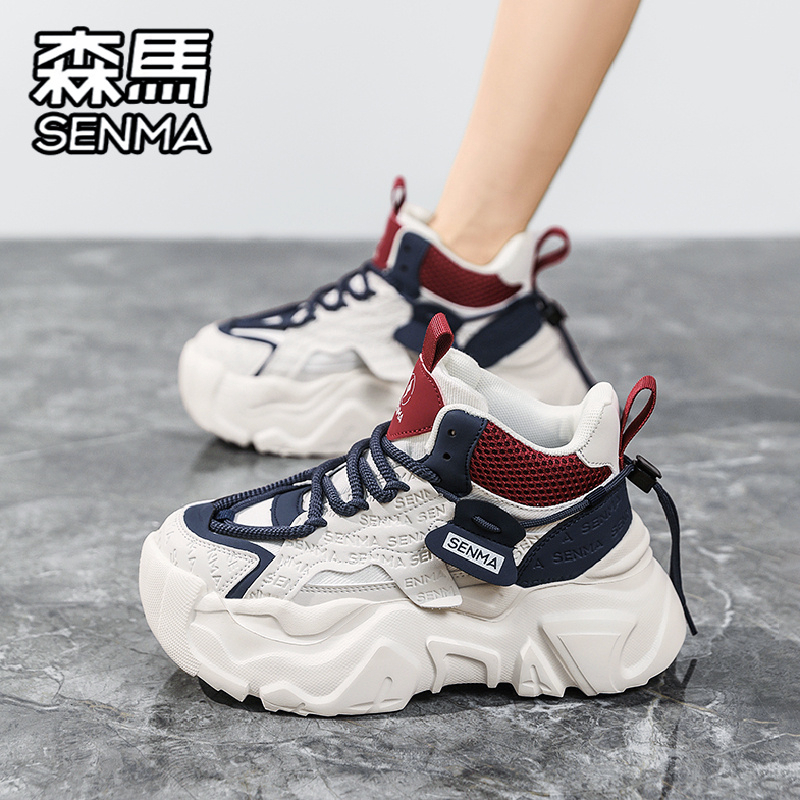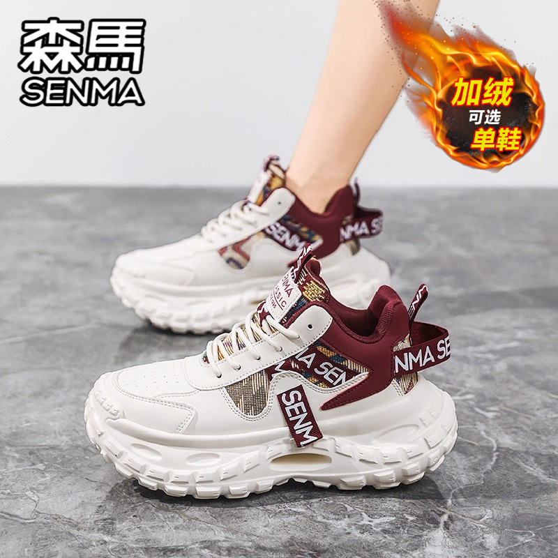 森达撞色高帮女鞋冬季新款商场同款复古厚底德训加绒休闲鞋XTW01