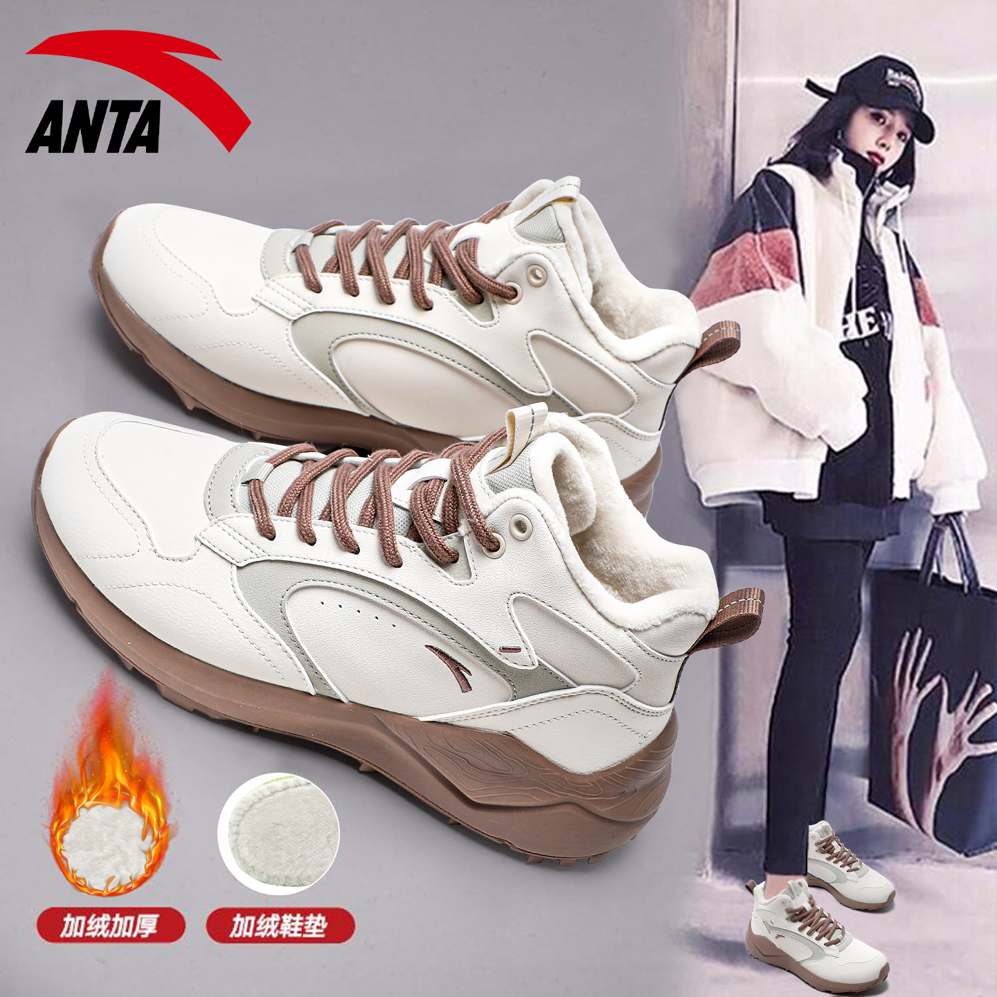 安踏踏洲高帮女鞋冬季新款加绒保暖抗冻棉鞋皮面防滑耐磨雪地鞋子