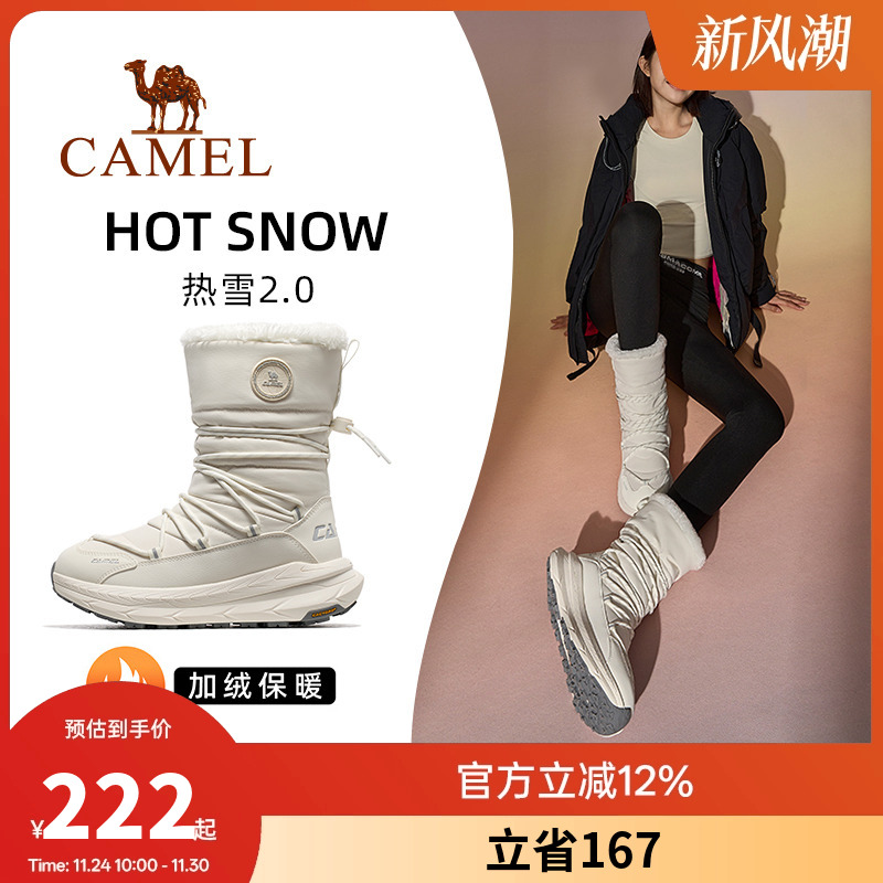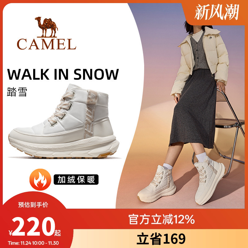 骆驼热雪2.0运动鞋冬季户外雪地靴高帮女鞋防滑防水加绒保暖棉鞋
