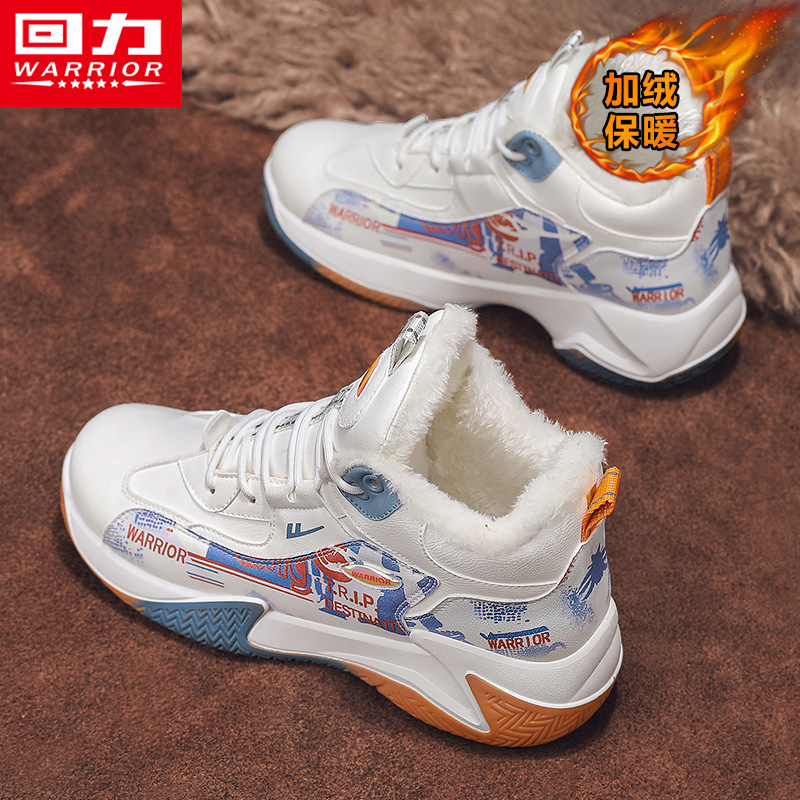 回力高帮女鞋冬季加绒加厚保暖棉鞋运动休闲跑步防滑小白情侣老爹