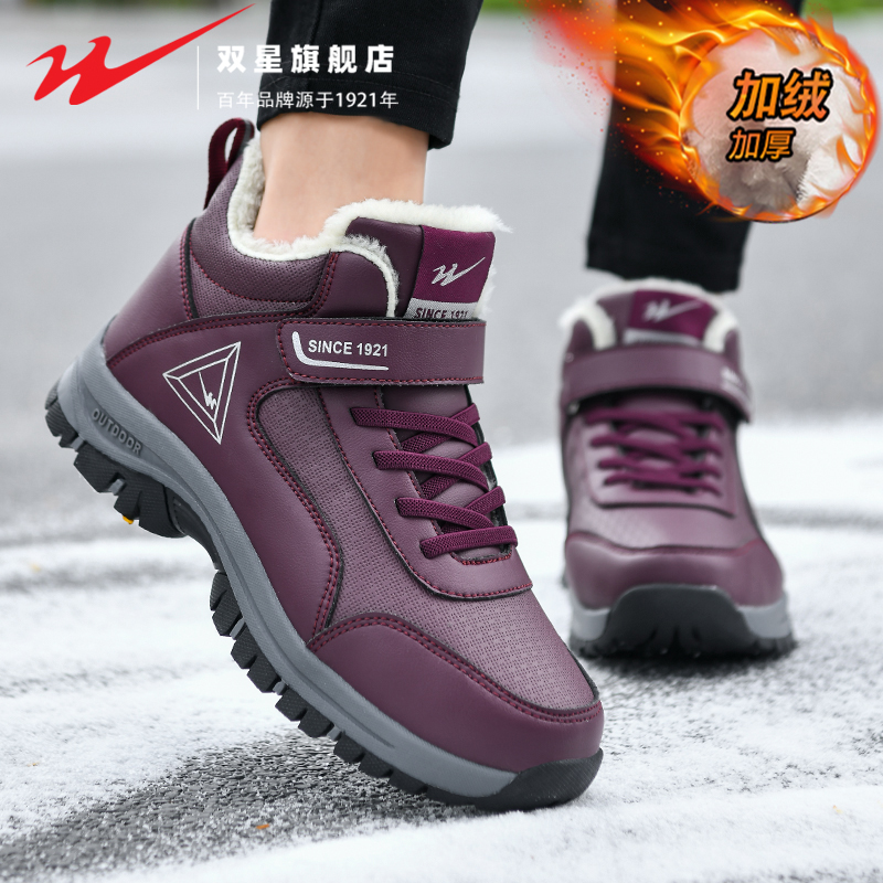 双星高帮女鞋冬季加绒保暖棉鞋抗寒雪地靴中老年人运动健步妈妈鞋