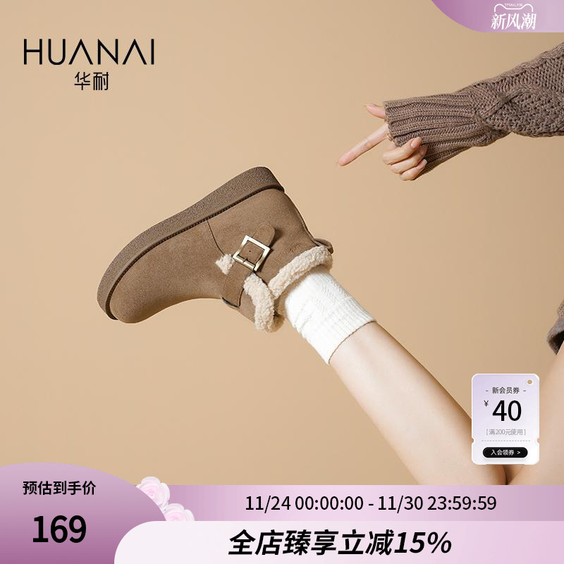 华耐雪地靴女款2025新款冬季棉鞋高帮外穿毛毛保暖加厚加绒勃肯鞋