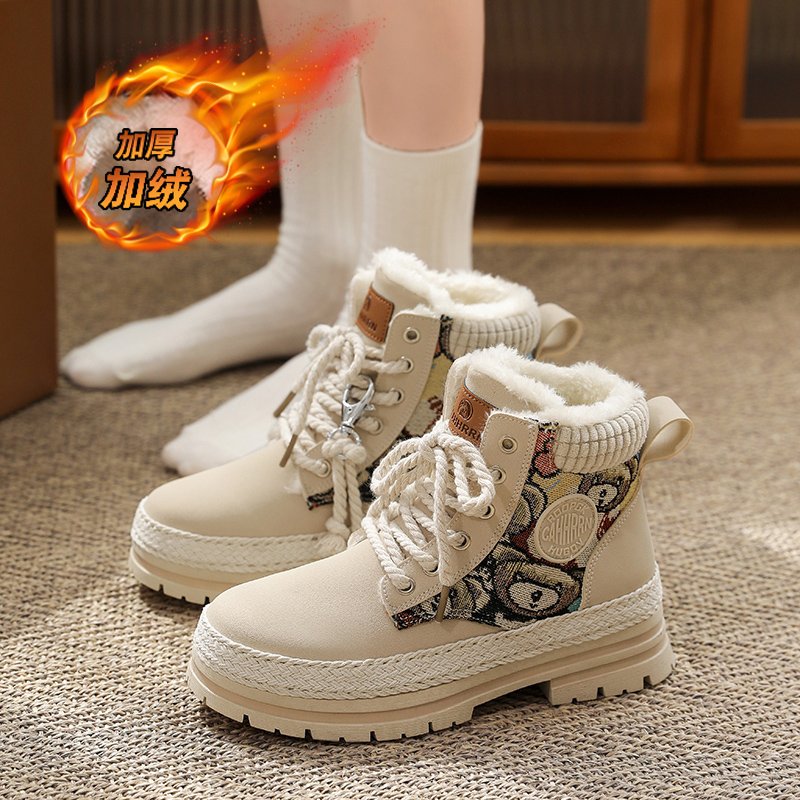高帮女鞋冬季休闲运动潮流加绒保暖马丁靴女士小众设计感工装潮鞋