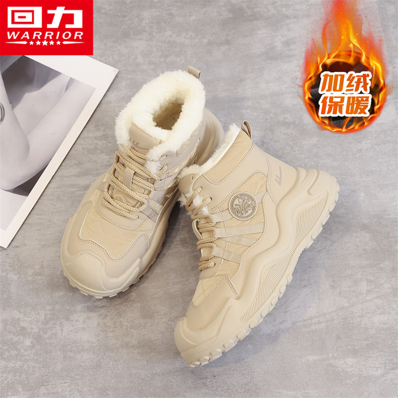 回力高帮女鞋冬季2025新款加绒加厚保暖运动二棉鞋学生防滑马丁靴